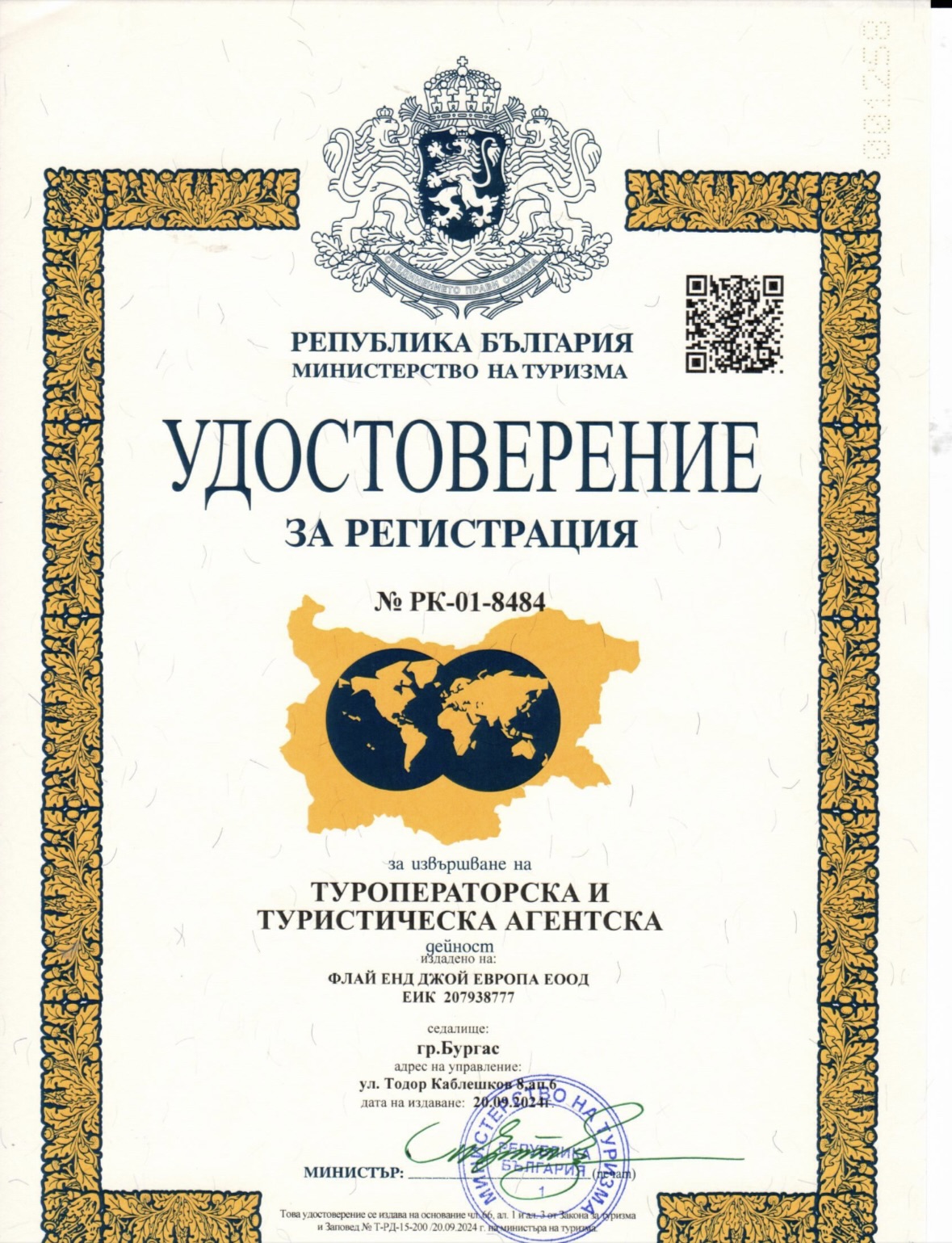 Fly&Joy – це туристична компанія, якій можна довіряти. Ми працюємо офіційно, маємо всі необхідні ліцензії та страховий захист, а наш досвід і бездоганна репутація підтверджені сотнями вдячних туристів. Обираючи нас, ви отримуєте гарантію надійності, професійного підходу та якісного сервісу